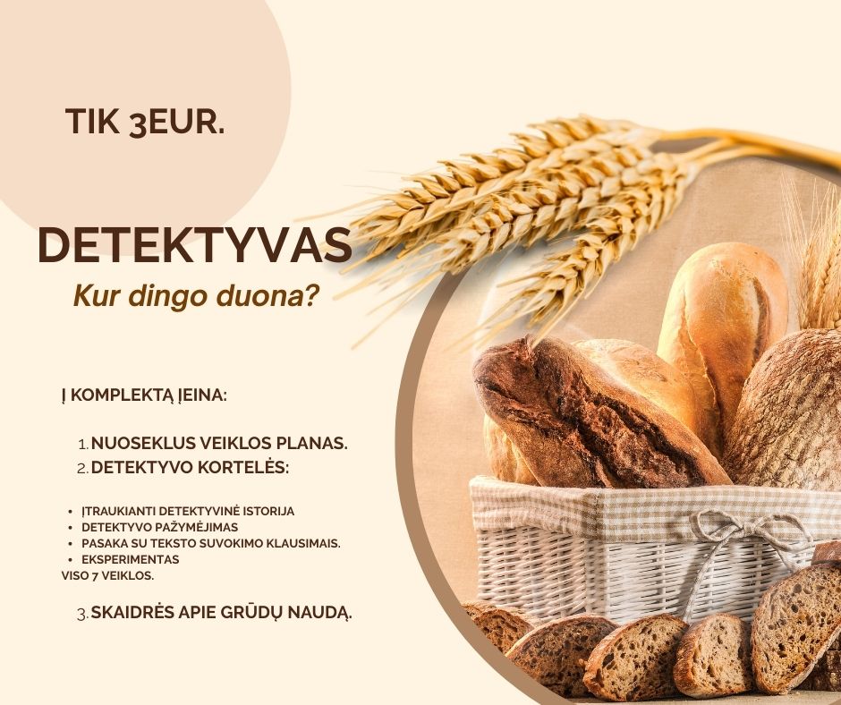 Tai paruošta detektyvinė dienos veikla, kuri aiškiai ir įtraukiai parodo visą duonos kelią – nuo grūdo iki iškepto duonos kepalo.