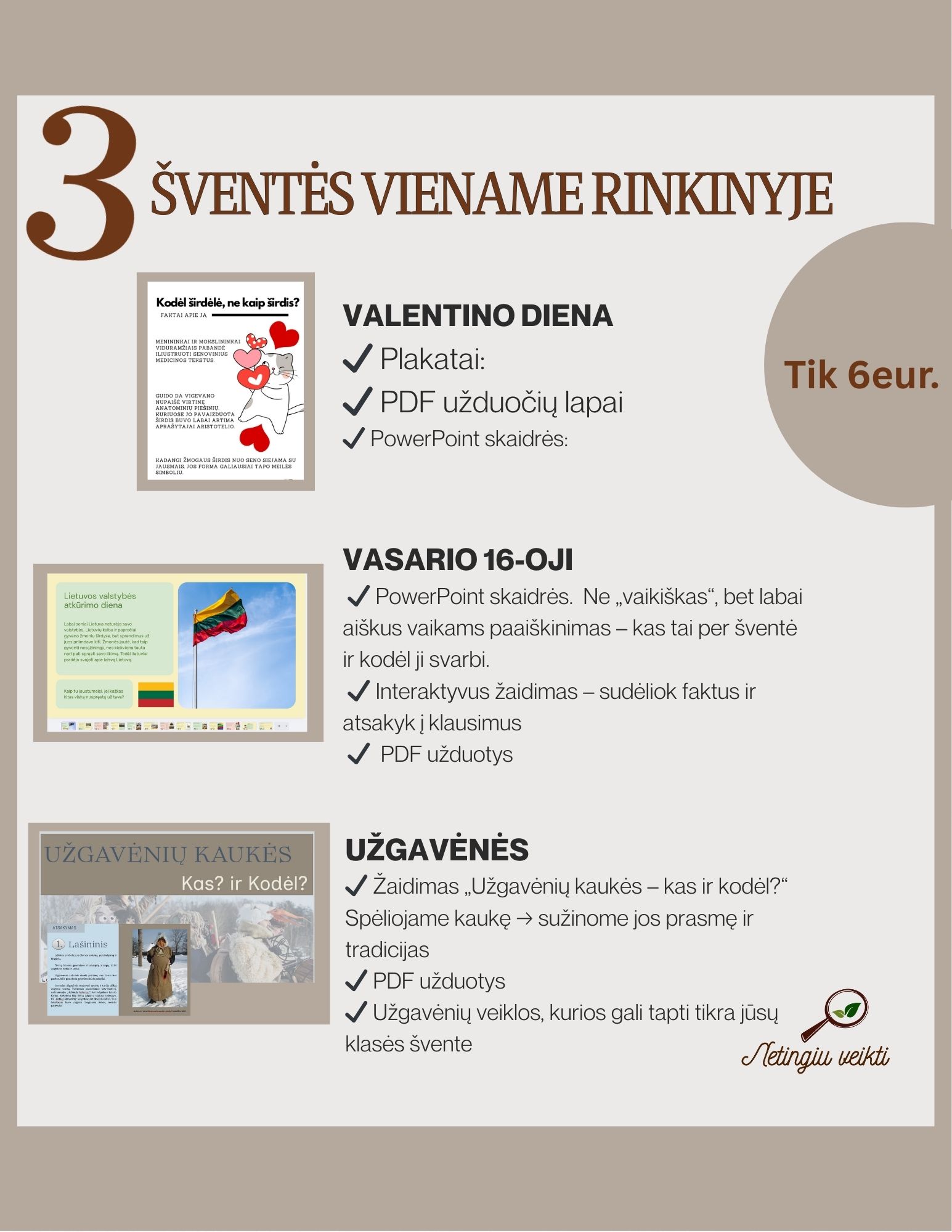 ✔️ 3 PDF užduočių lapai