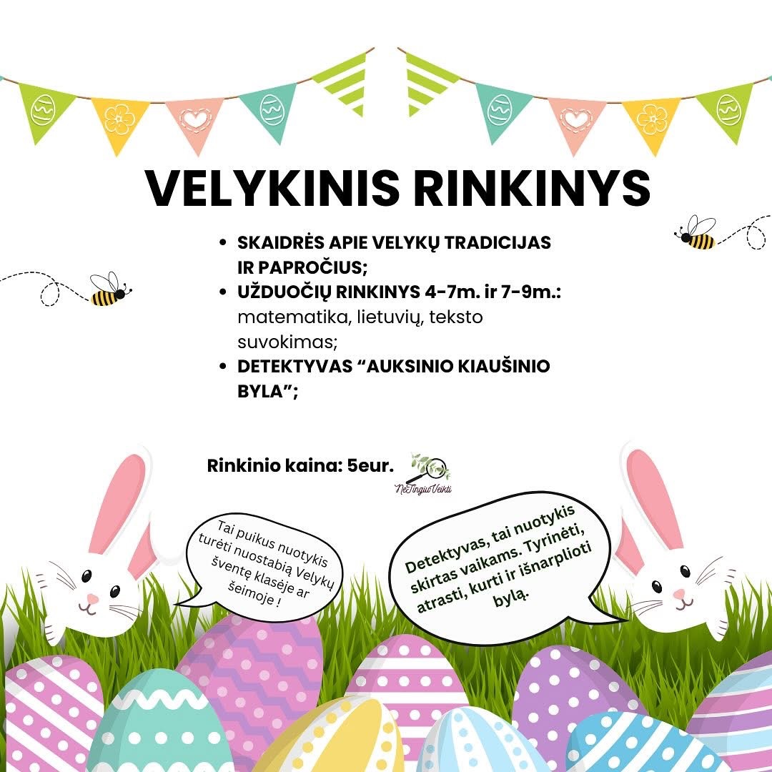 🌸 „Velykinis rinkinys“ – tai šventinis edukacinis nuotykis, kuriame susijungia žinios, kūryba ir žaidimo džiaugsmas!